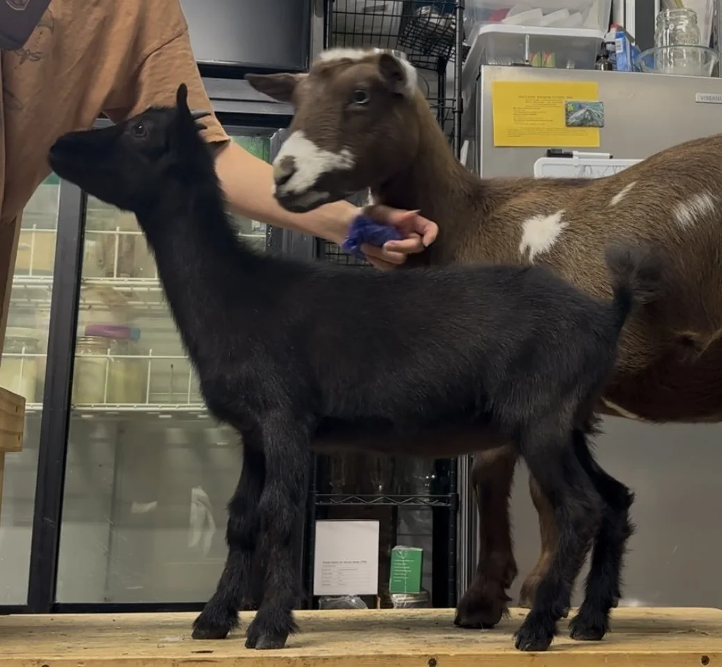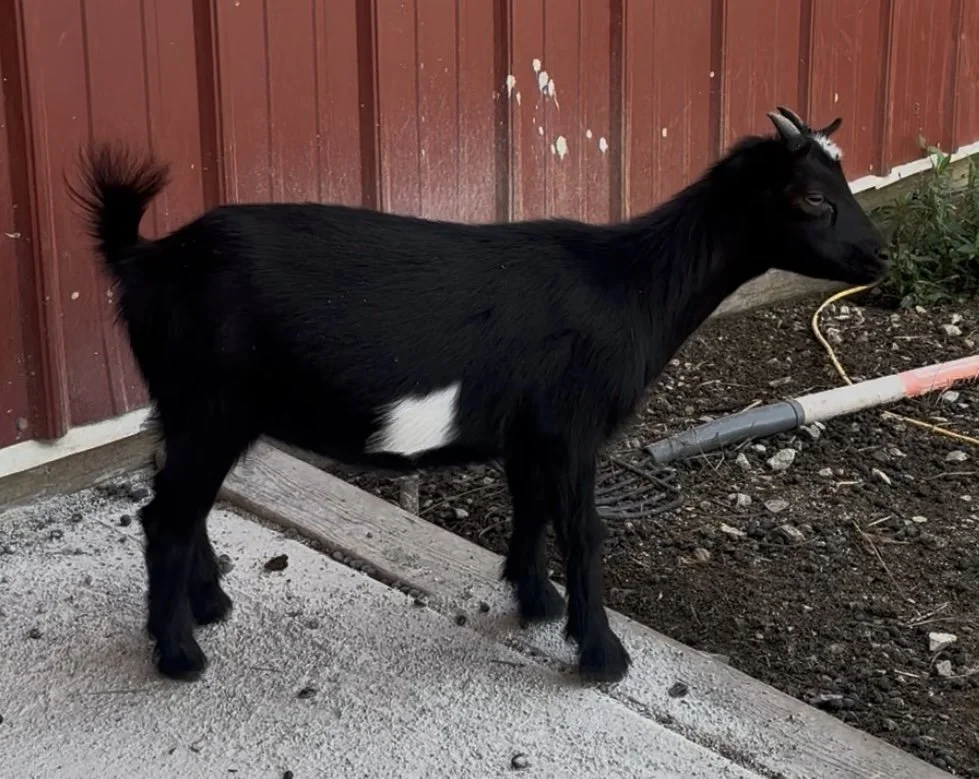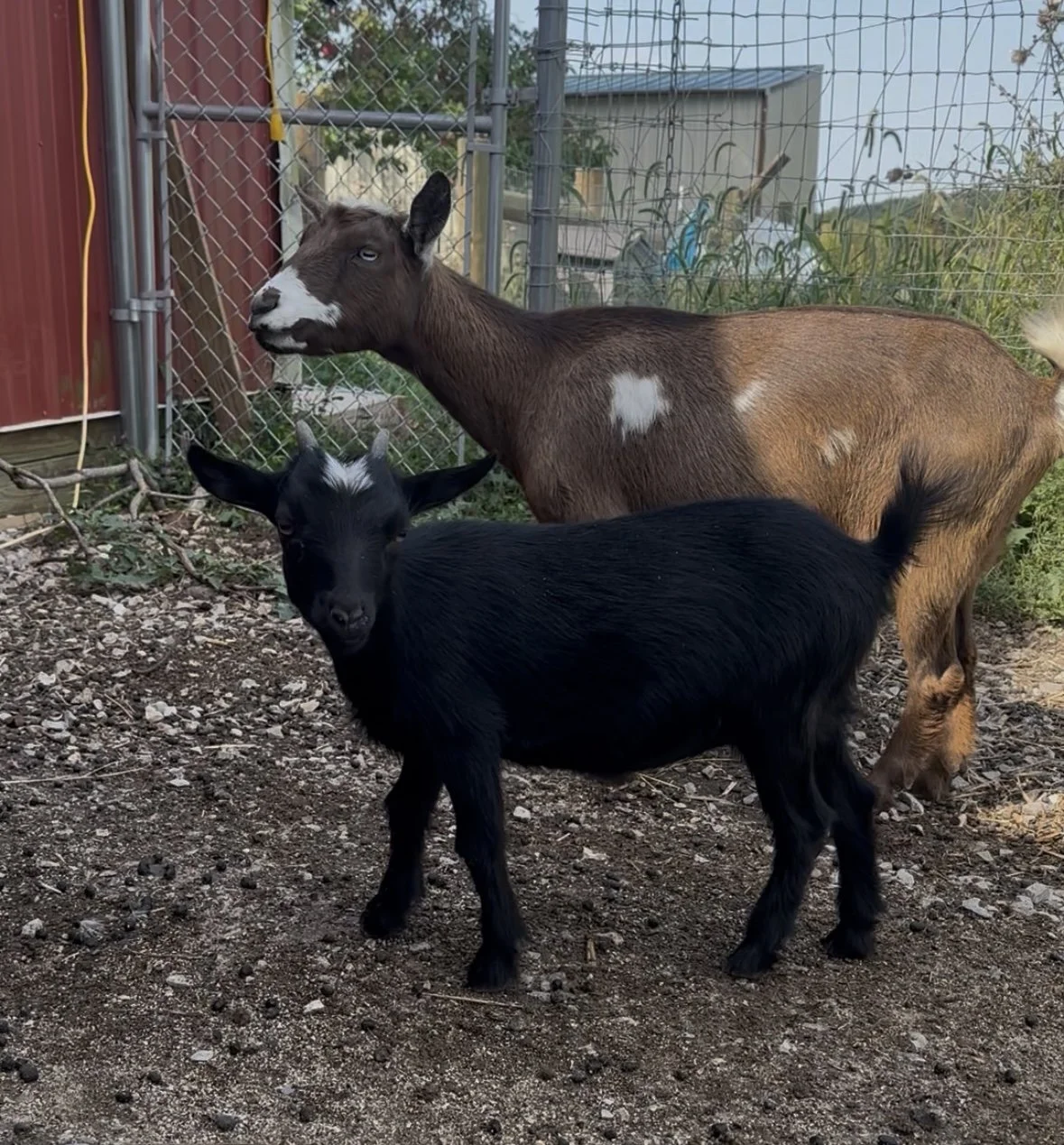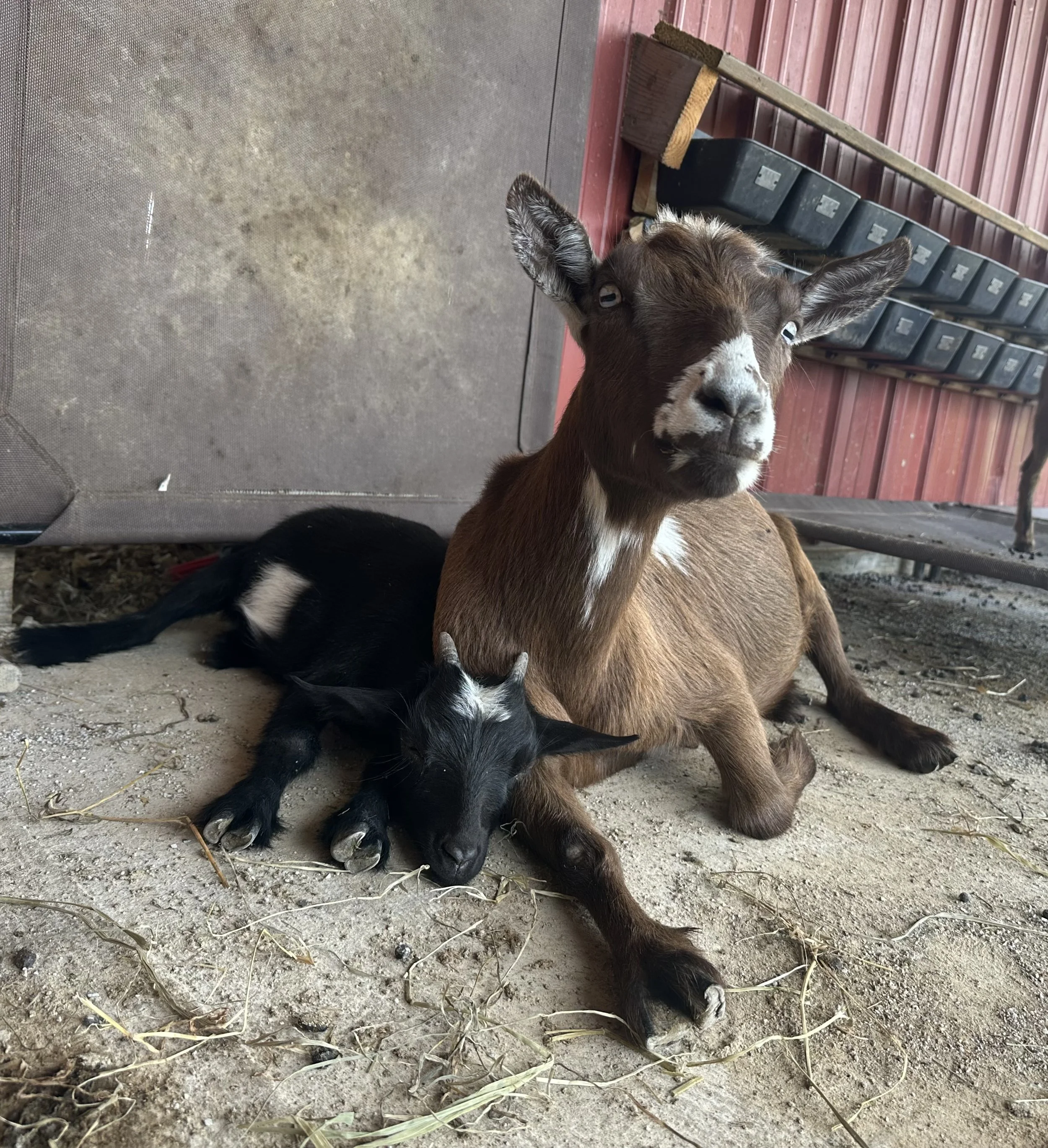 Harmony is the first retained daughter of our herdsire, The God of War. She is the second retained daughter of our doe Country Maidens Midnight Dream. She has a beautiful dark chocolate coat and a sweet personality. She’s a little doll baby and so loved. Her birth felt like a small miracle. 2025 was a buck heavy year for us, and her dam had just delivered triplets - two bucklings and a DOA doeling. I cried in the pen at the loss itself but also because this was my last kidding of the season and I was feeling a bit defeated. Just as I was wiping my tears and wrapping the little doeling’s body in a towel, another baby flopped right out and it was this much-wanted baby girl. I spent a week or more trying to find the perfect name for this new little life, and finally landed on Midnight Harmony - an homage to both her parents. Midnight of course calling back to her dam’s registered name, and Harmony as Harmonia is a daughter of Ares, the Greek god of war. I hope that she will continue to be a beacon of light on the farm and that she will grow to be a good genetic influence in our herd.