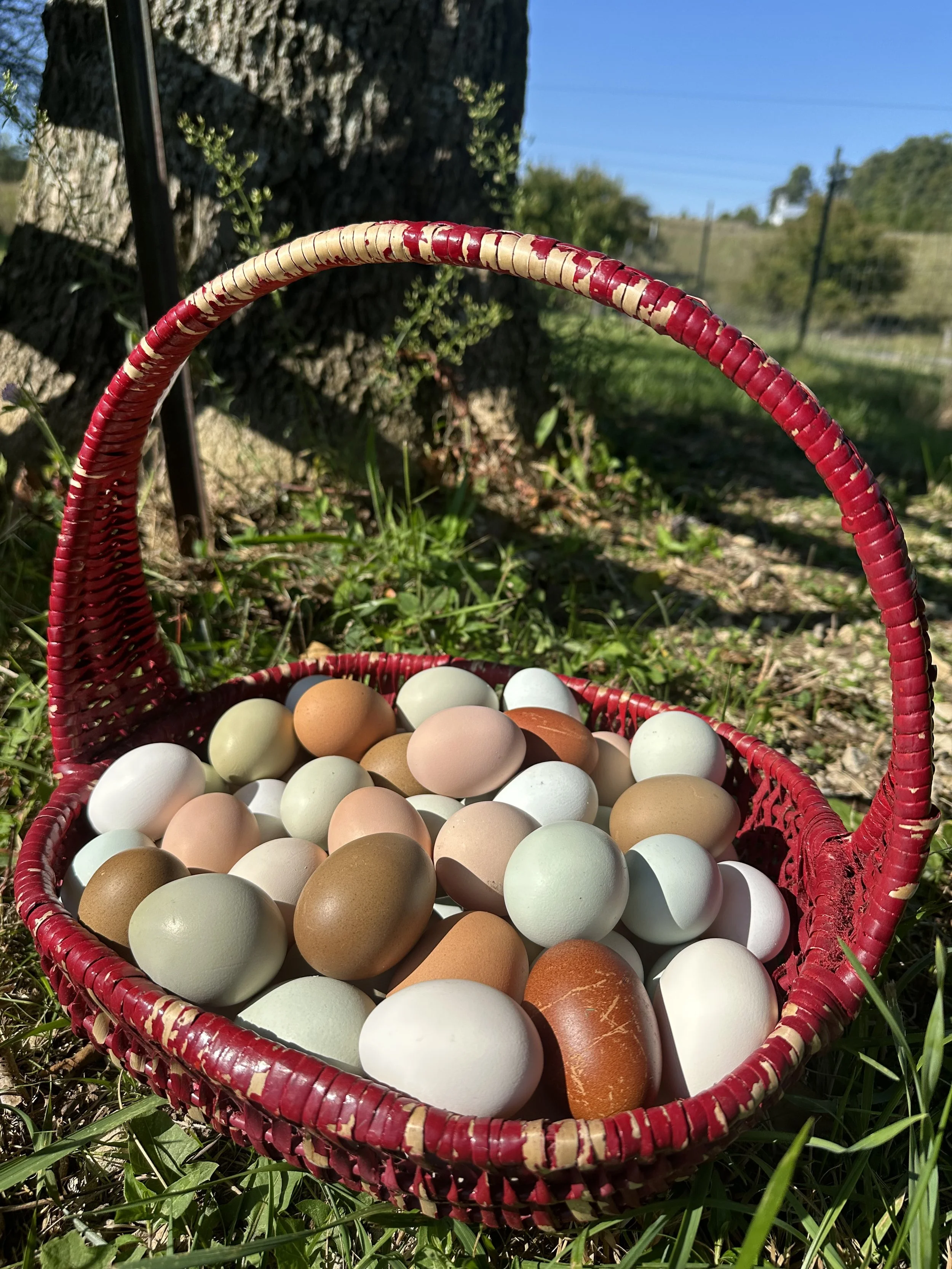 We have quite a few different breeds of chickens which provide us with an array of rainbow eggs. We often have chicks growing out and occasionally an incubator full of eggs! Our chickens are an invaluable asset to our homestead, providing food and helping sustain our little ecosystem. They turn our compost for us and help control insect and parasite populations. Free ranging our property provides them with enrichment and a varied diet. We sell their eggs onsite which helps to cover feed costs and other farm expenses.