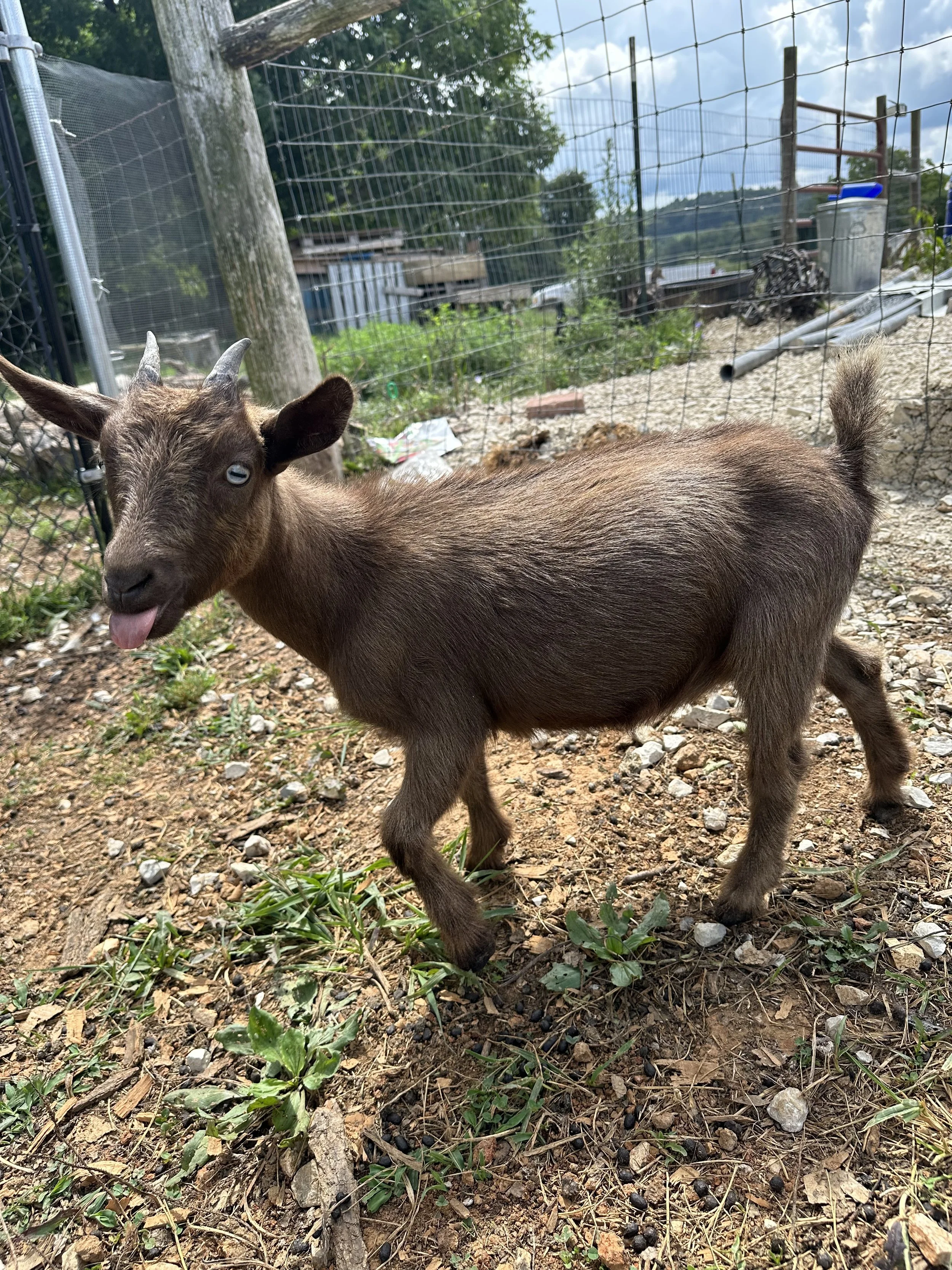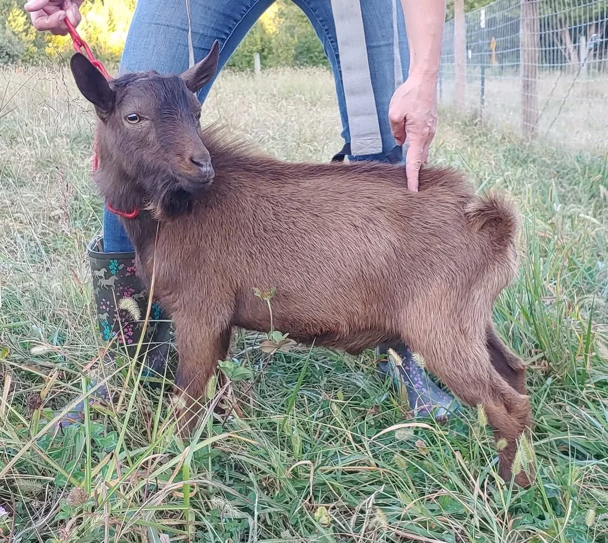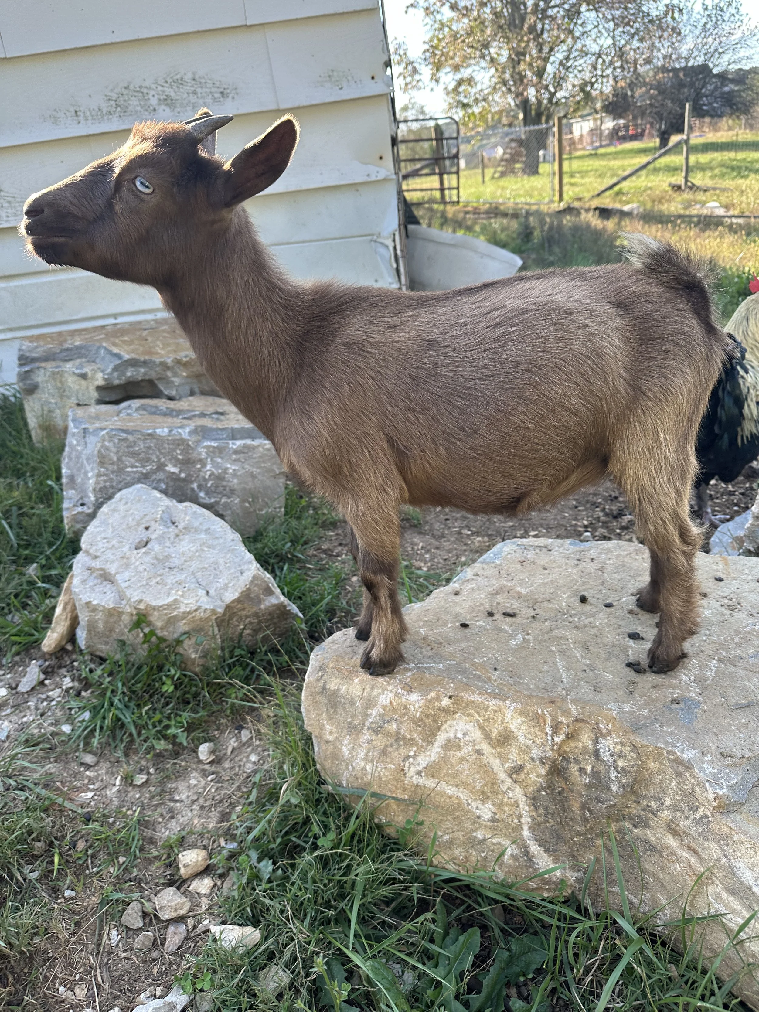 Hilda is a granddaughter of one of my favorite does, The Kutz’li Denali. Hilda’s dam has a beautiful udder and so does Denali, so I have high hopes for this doe. She was quite the chameleon growing up, with many color changes along the way.
