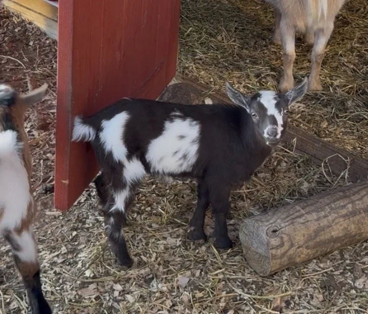 Sprinkles is a beloved part of our herd. Anyone that visits almost always points her out as their favorite. She freshened for the frist time 2/6/26 with a healthy single buckling. Her udder has been fun to watch develop and she’s a dream to milk.